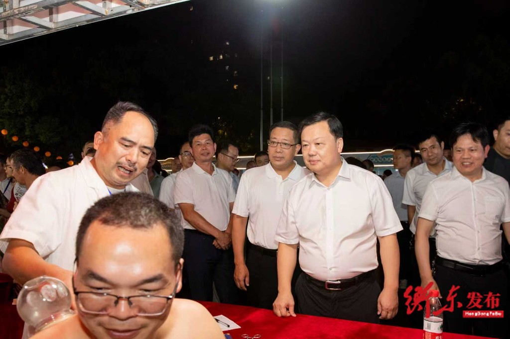 衡东融媒8月19日讯(融媒体记者 谭忠 谭碧婷)“罗帅故里杏林花开,中医夜市安康万家”。8月19日是第八个中国医师节,当天晚上,衡东县在县城文体广场举办首届“中医养生文化夜市”。县委书记谭建华到场参观,县委副书记、县长蒋崇华出席并宣布夜市正式开市。