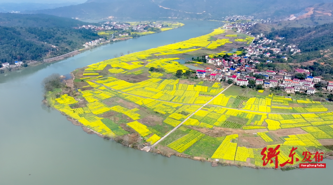 衡东融媒3月13日讯(融媒体记者 王宇锋)近日,衡东县杨林镇宁中村的洣水河两岸,千亩油菜花竞相绽放,吸引了周边众多县区的游客前来观赏。