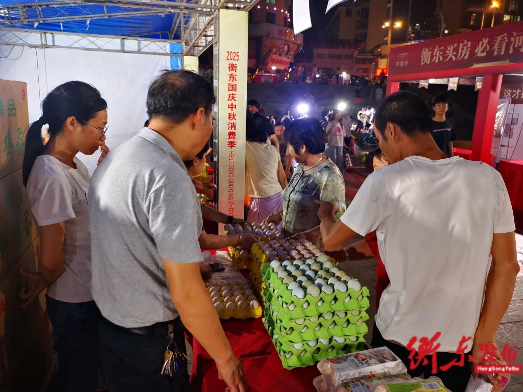 衡东融媒10月4日讯(融媒体记者 黄波)10月3日晚,衡东 “双节放松・就来衡东” 消费季 “塑品牌,拓市场,提销售” 优质农产品展销周现场灯火璀璨,人气持续爆满,“农”味十足的展销场景成假期夜消费亮点。