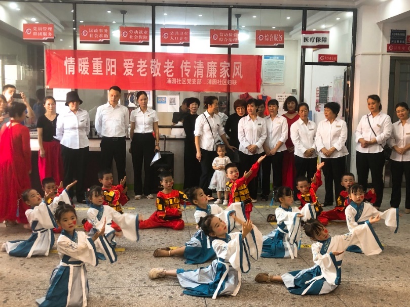 金秋时节,丹桂飘香,年年重阳,今又重阳,为弘扬中华民族传统美德,在喜迎二十大之际,浦园社区党支部及浦园社区妇联在9月30日特开展清廉妇联,以尊老、敬老、爱老、孝老为主题的重阳节庆祝活动,陪伴社区80岁以上高龄老年人快乐过重阳,参与此次活动的老年人达35人,整个活动在社区东浦幼儿园留守儿童及社区妇联带来的《中华孝道》、《九儿》中拉开序幕。