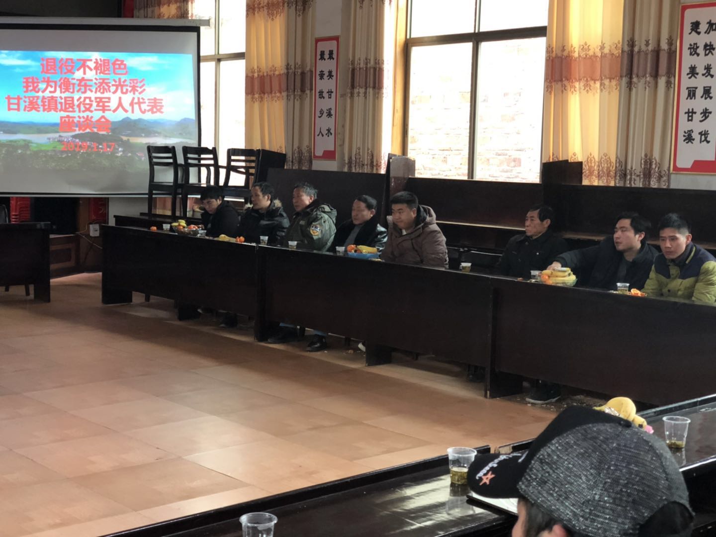 在2019年春节即将来临之际,甘溪镇人民政府于2019年1月17日召开退役军人代表座谈会,与甘溪镇退役军人代表进行座谈交流,听取大家的意见建议,进一步做好军队退役人员服务管理工作。