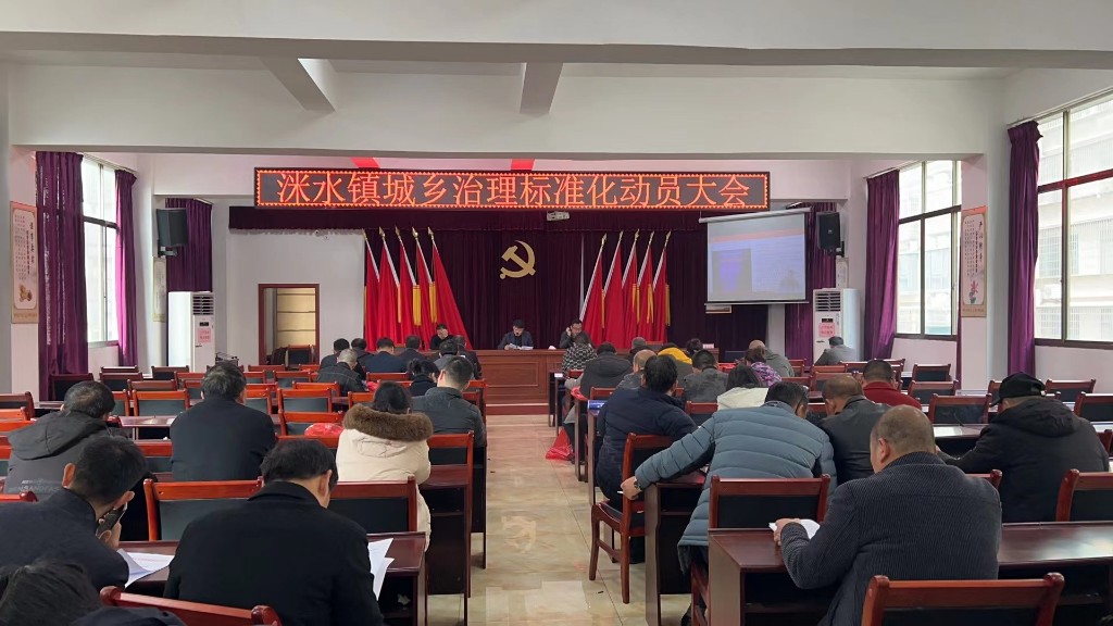 2021年12月21日上午洣水镇政府主持召开洣水镇城乡治理标准化动员大会,全镇28个村、社区联点、驻点干部和支部书记参加会议。