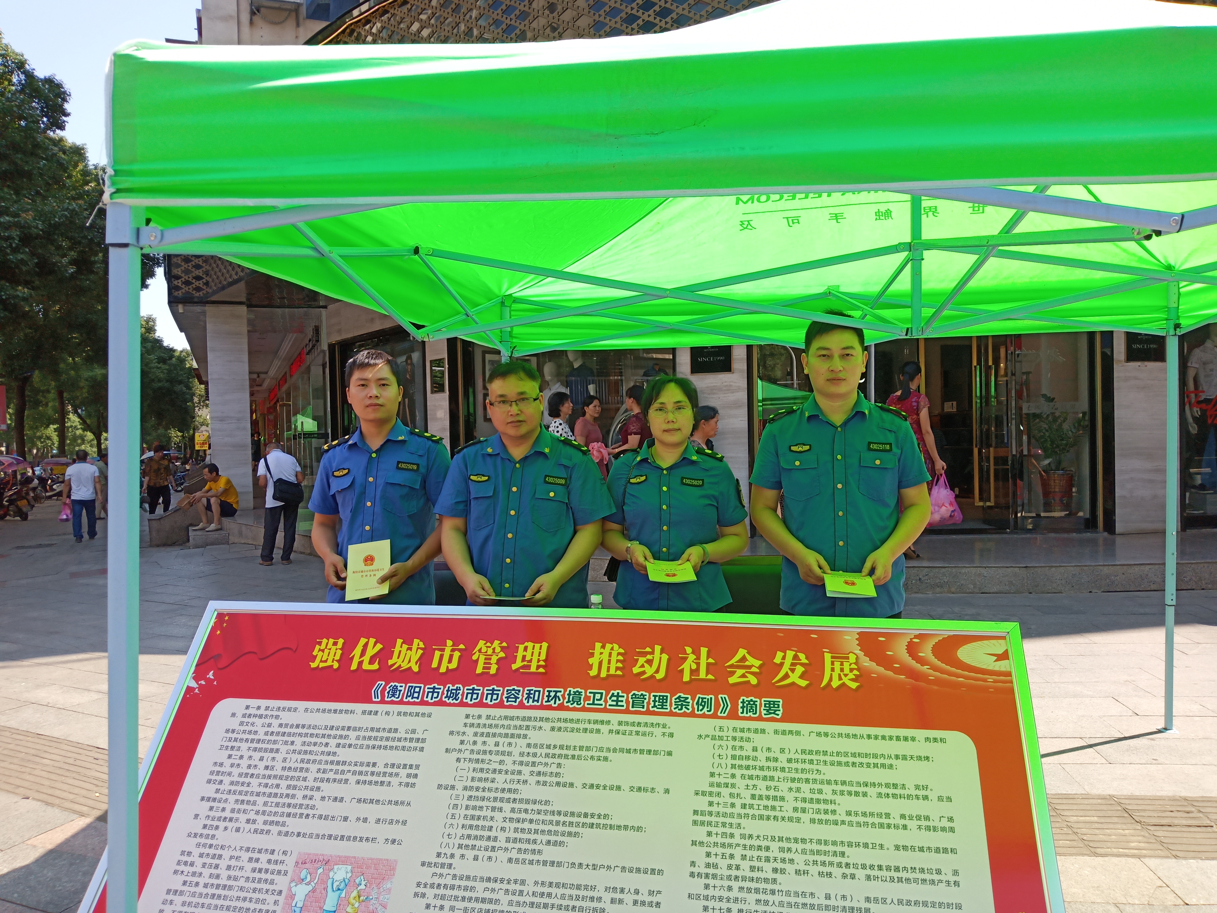 此次活动共出动执法车辆8台、宣传车1台、设置宣传展板4块,接待市民咨询200余起,发放《衡阳市城市市容和环境卫生管理条例》5000余本,宣传画册1000余张。