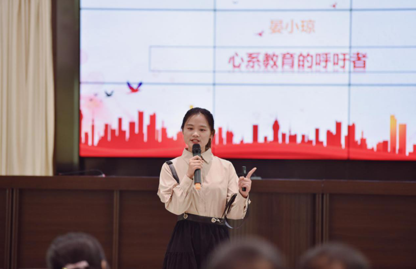 常宁市教育局推荐的胡孟然老师在《点亮山区的不灭"蜡烛"》的演讲中,讲述了常宁市第七中学晏小琼老师以大爱的教育情怀践行着教师的初心使命,为祖国的教育事业贡献着光与热,用一颗对教育的炽热之心、对学生的关爱之心、对村民的帮扶之情,托起大山教育希望。