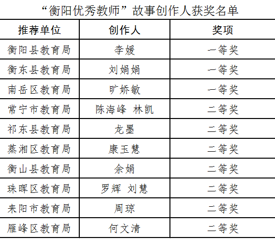 "衡阳优秀教师故事"比赛活动结果出炉!这些老师获市一、二等奖