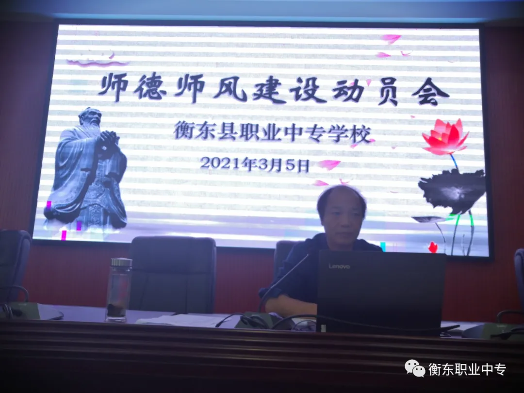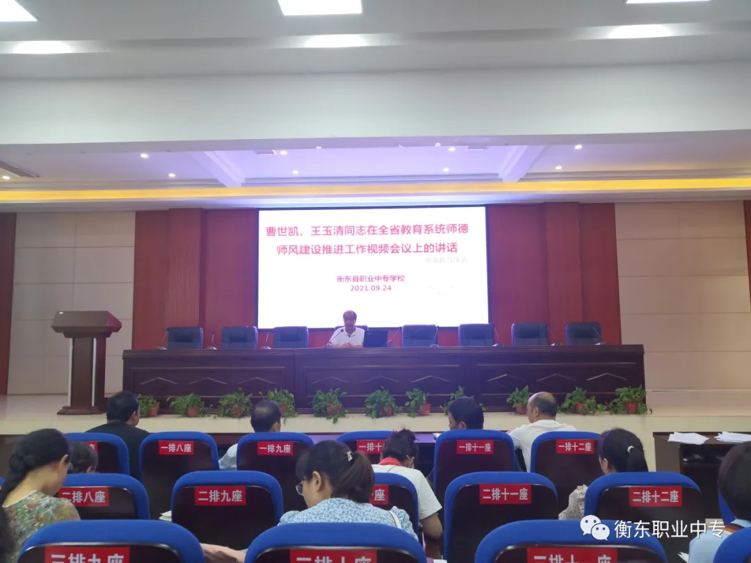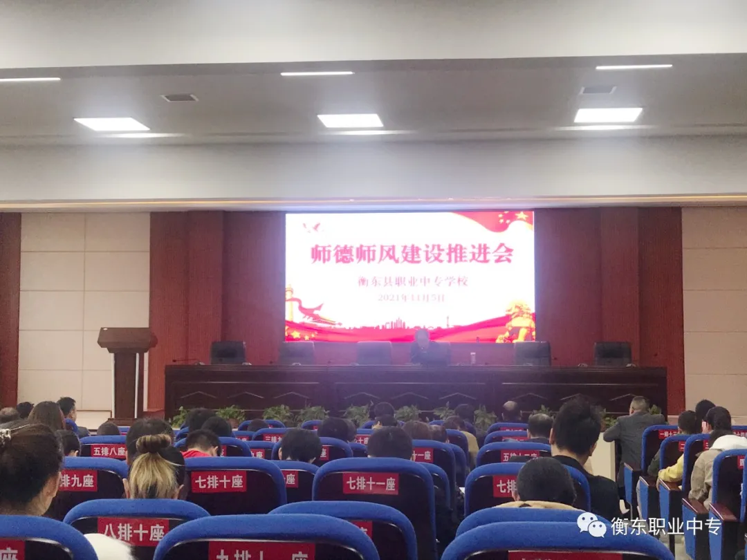 11月5日,衡东职专"师德师风建设推进会"在学校报告厅召开,会议由校长眭耀文主持,全体教职员工参加了会议。