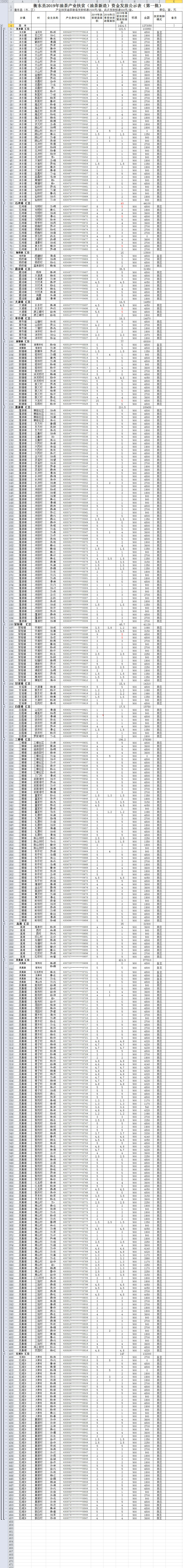 衡东县2019年油茶产业扶贫(油茶新造)资金发放公示表(第一批)