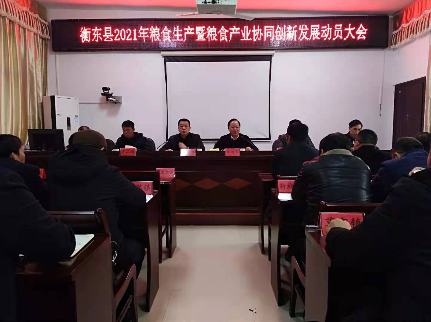 1月21日上午,衡东县2021年粮食生产暨粮食产业协同创新发展动员大会在农业农村局大会议室召开,在主席台就座的有副县长李建华、农业农村局局长彭剑飞、农业农村局党组书记单志雄、供销社主任文洪斌、农业农村局副局长单国香、统计局副局长文武,参加会议的有17个乡镇的分管领导、农技站站长,15个粮食监测点负责人。会议由彭剑飞主持,李建华作重要讲话。