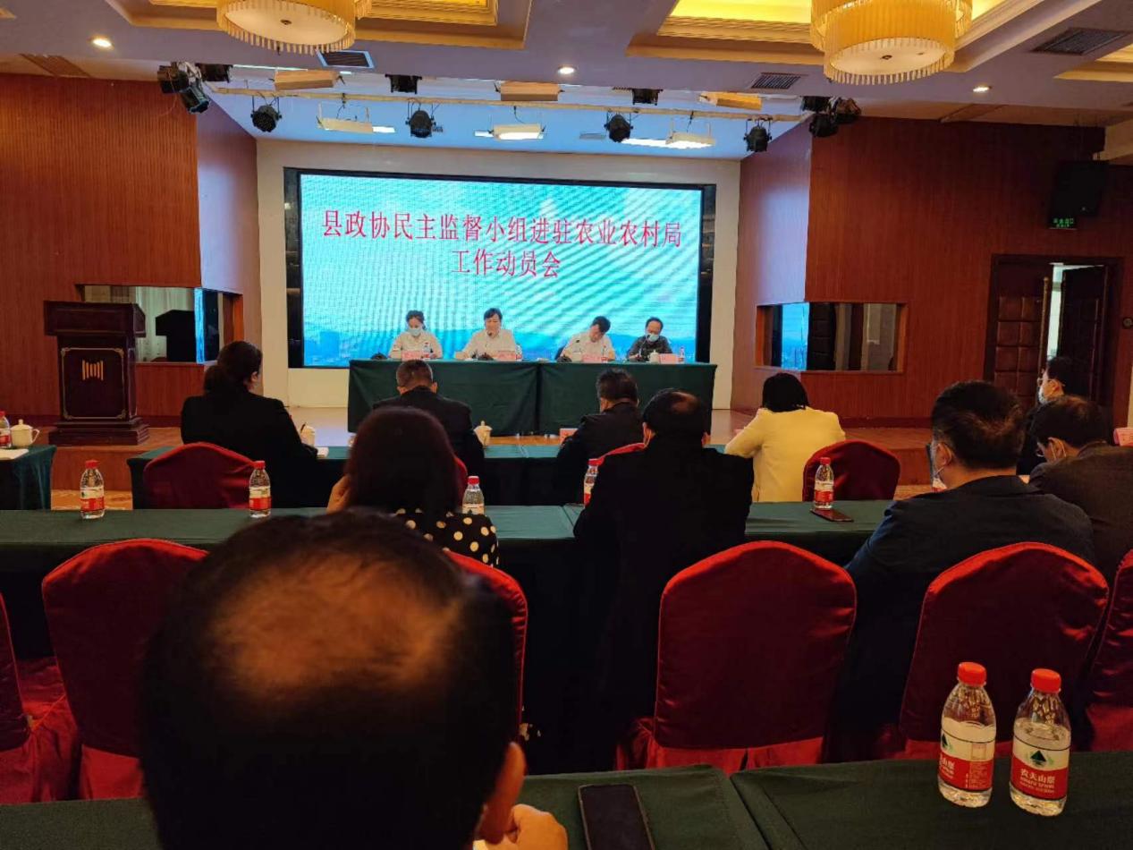为充分发挥人民政协民主监督作用,县政协民主监督小组将进驻我局,开展以乡村治理标准化为重点的民主监督工作。5月23日上午,县政协民主监督小组进驻农业农村局工作动员会在恒瑞国际大酒店五楼恒建厅召开,会议由局党组成员、副局长侯灵平主持,县政协副主席向卫平作重要讲话,局党组书记、局长李振华作表态发言,全体干部职工参加。