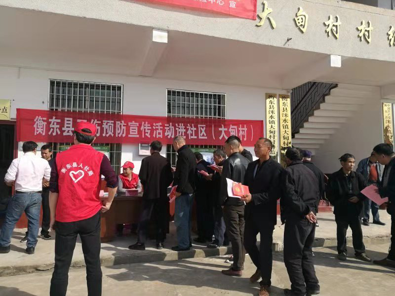 2018年11月2日上午衡东县工伤保险基金管理中心党支部组织全体党员和入党积极分子走入大甸村社区,开展工伤预防宣传党日活动,工伤预防知识读本发放,工伤保险政策咨询,解答村民疑难困惑,指导村民如何保护自身的合法权益。累计120人次,发放资料500份。