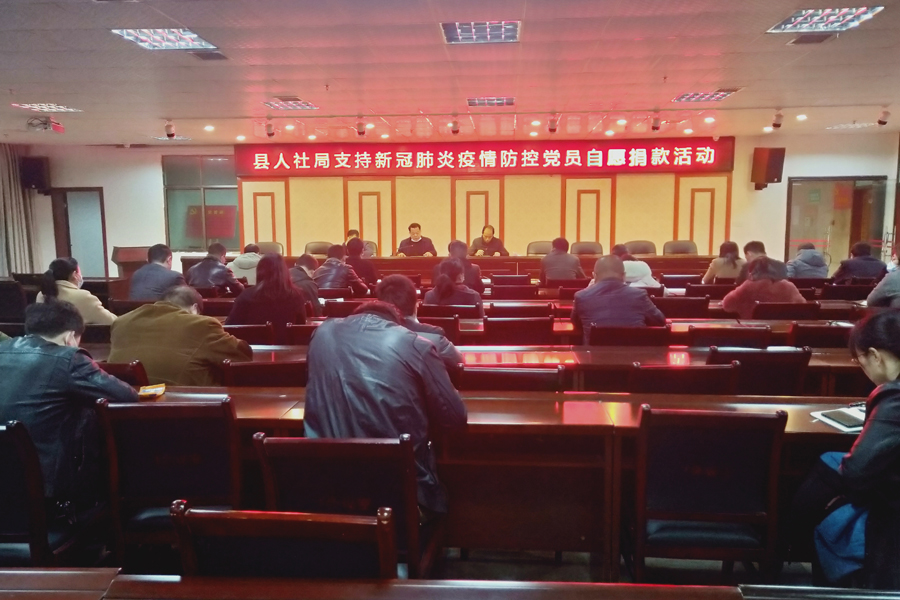 积极响应党员央号召,支持新冠肺炎疫情防控工作,党员干部纷纷慷慨解囊,奉献爱心力量。3月2日下午4:00,县人社局全体党员在二楼党员教育中心举行抗击新冠肺炎专题主题党日暨党员自愿捐款活动,包括退休支部同志在内的98名党员干部用实际行动支持前线疫情防控。
