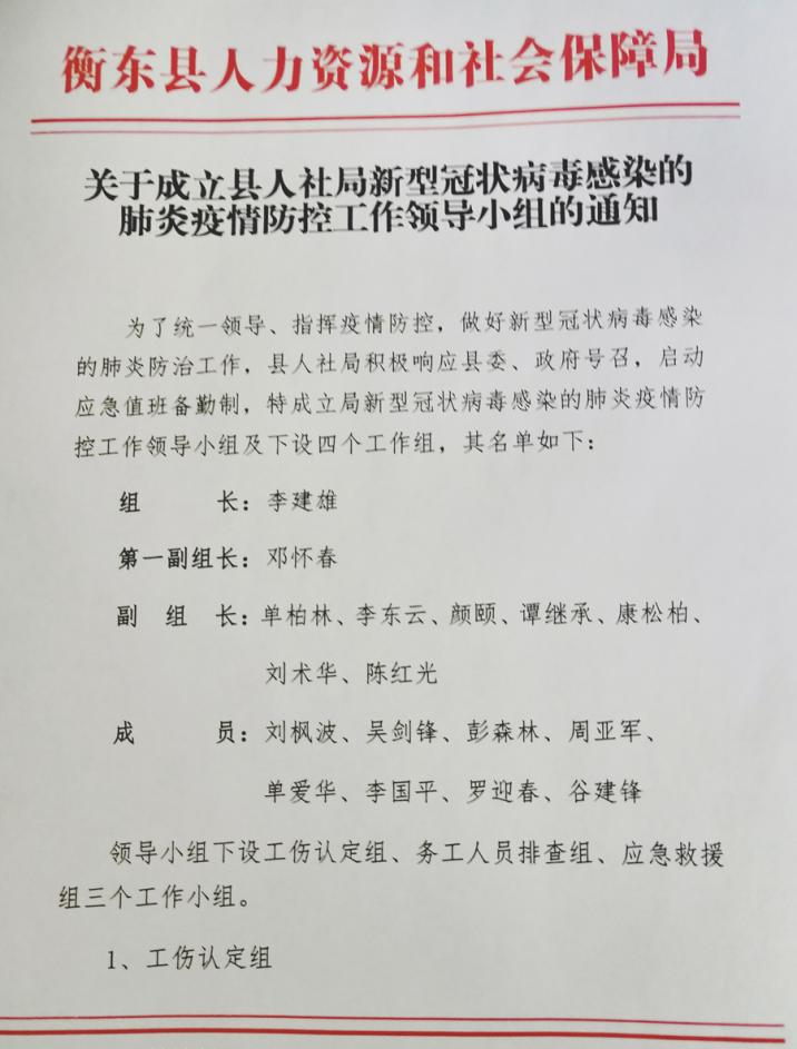 衡东县人社局成立新冠肺炎疫情防控工作领导小组