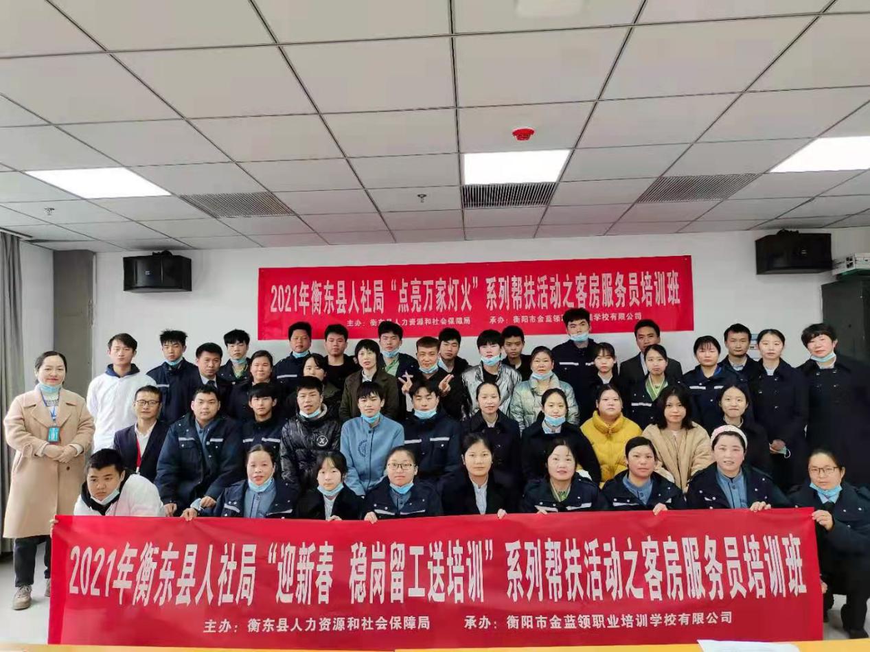 前段时间,衡东县人力资源和社会保障对接企业需求,积极开展"百企千岗送培训"活动,大力开展企业在岗职工技能提升培训。针对湖南四方蓬源旅游开发实业有限公司"湘·江南"项目急需客房服务员的情况,采用校企合作形式,充分发挥线上平台优势,灵活采用理论线上培训和线下实操培训相结合的模式,对"湘·江南"项目50名员工进行了客房服务员培训,进一步帮助企业职工适应企业岗位需求,实现稳定就业。