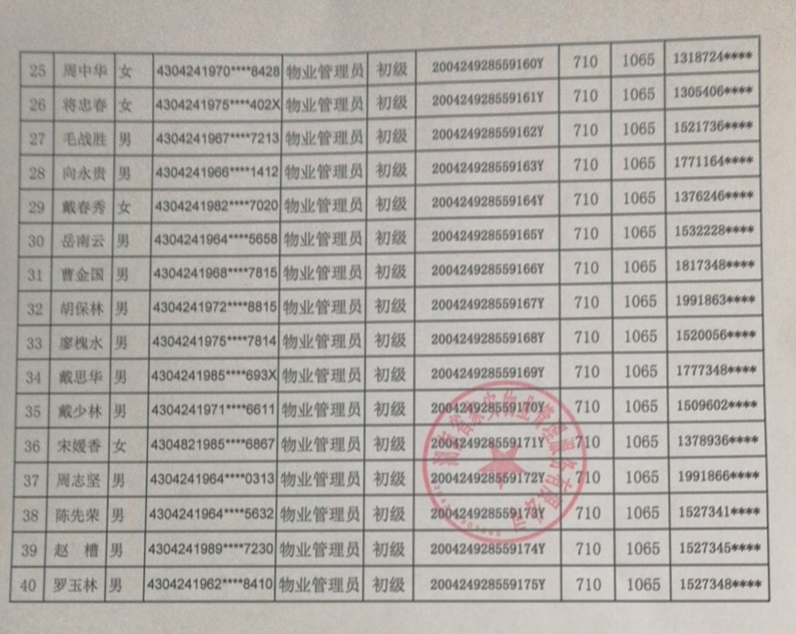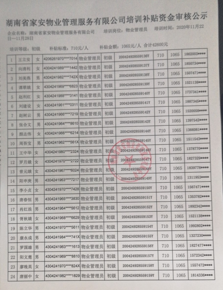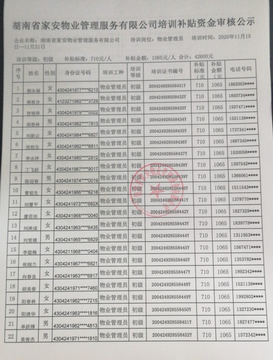 2020年湖南省家安物业管理服务有限公司(初级)物业管理员职业培训公示