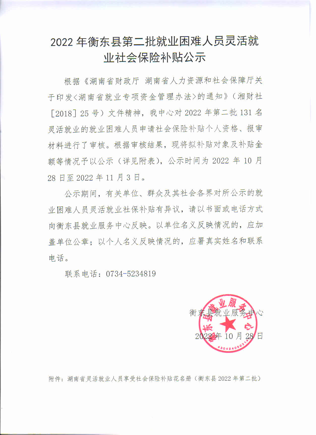附件:湖南省灵活就业人员享受社会保险补贴花名册(衡东县2022年第二批)