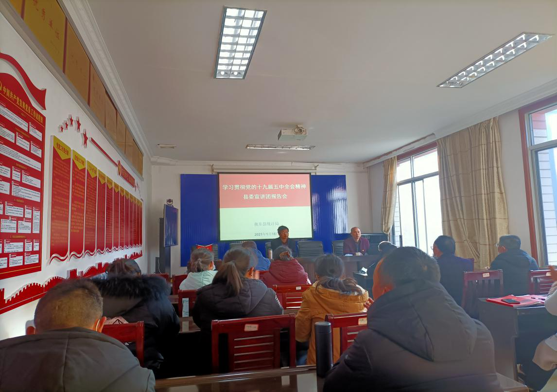 为深入学习宣传贯彻党的十九届五中全会精神,在单位迅速兴起学习十九届五中全会精神的热潮,1月18日上午,衡东县统计局特邀县委宣讲团颜知明讲师进行十九届五中全会精神的专题宣讲,衡东县统计局全体干部职工参加活动。