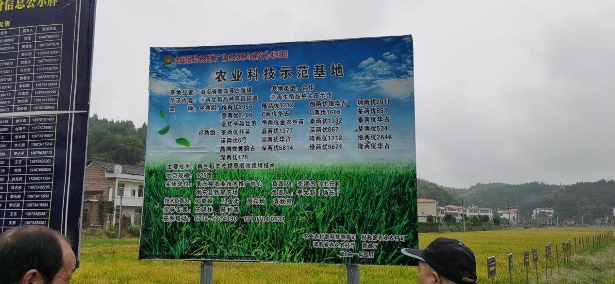 为总结再生稻丰产提质增效栽培技术经验,广泛宣传水稻绿色高效生产技术。近日,由县农业局牵头,邀请衡阳市农业技术服务中心,来到白莲镇谭家桥村农业科技示范基地,指导再生稻丰产高效栽培技术。今年的再生稻,从品种选购、育秧栽培、田间管理、配方施肥、病虫害防治,机收时机都是在农业技术人员亲临田间现场指导下进行的。以实施基层农技推广补助项目为契机,推进优质粮食工程,推广"一季稻+再生稻"丰产提质增效技术,实现种一季收两季,达到促进农民增产、增收、增效的目的,为保障粮食生产再辟新途。