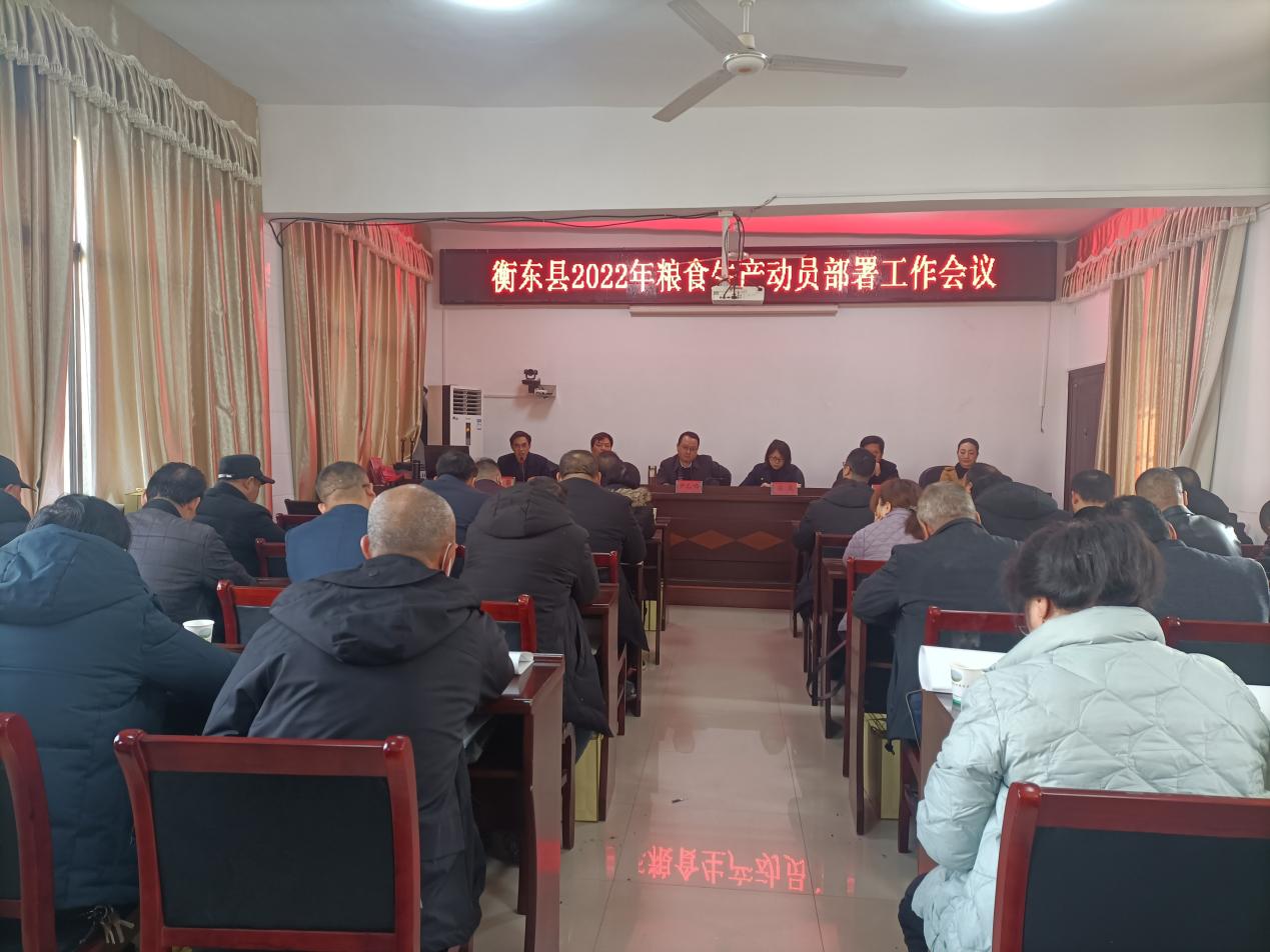 1月12日上午,衡东县2022年粮食生产动员部署工作会议在县农业农村局大会议室举行,标志着我县2022年粮食生产工作拉开了序幕。在主席台就座的有副县长尹乙鸣、副县长温岚、县政府办副主任陈陆平、农业农村局局长李振华、财政局党组成员肖凤莲、农业农村局副局长单国香。会议由振华局长主持。各乡镇分管领导和乡镇农业技术综合服务中心负责人参加会议。