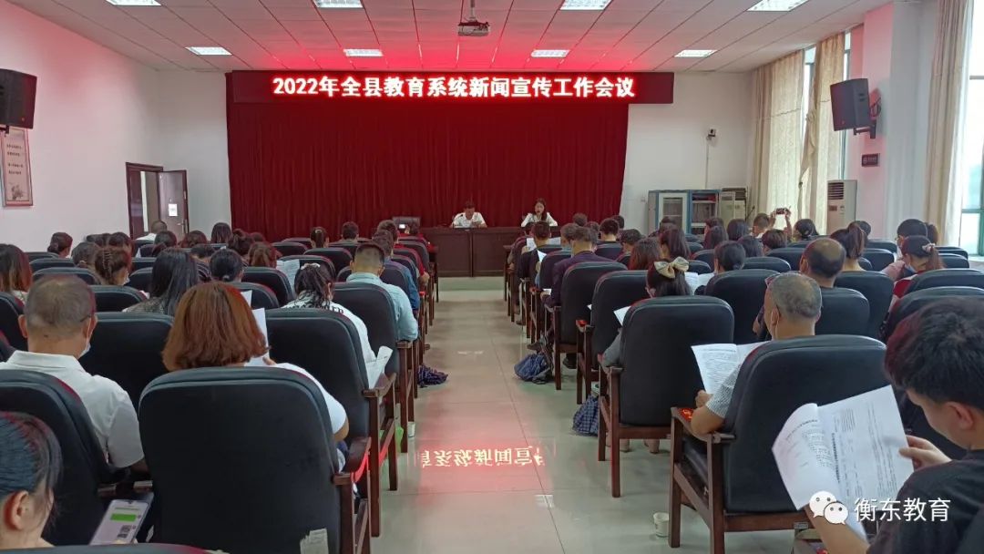 为贯彻落实2022年衡阳市教育局新闻宣传工作会议精神,进一步加强我县教育系统新闻宣传工作,5月30日下午,衡东县教育局召开了2022年全县教育系统新闻宣传工作会议。县直、民办学校、乡镇教育管理服务中心的分管领导、骨干通讯员参加会议。
