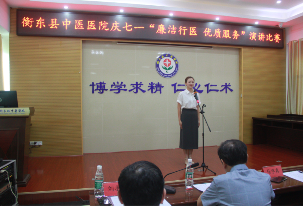 弘扬清廉之声,永葆白衣风采。为了凝聚医院发展正能量,营造党风清正、行风清明、院风清朗、医风清新的良好氛围,进一步加强新时代廉洁文化建设。7月8日下午,衡东县中医医院举行"廉洁行医 优质服务"主题演讲比赛决赛。
