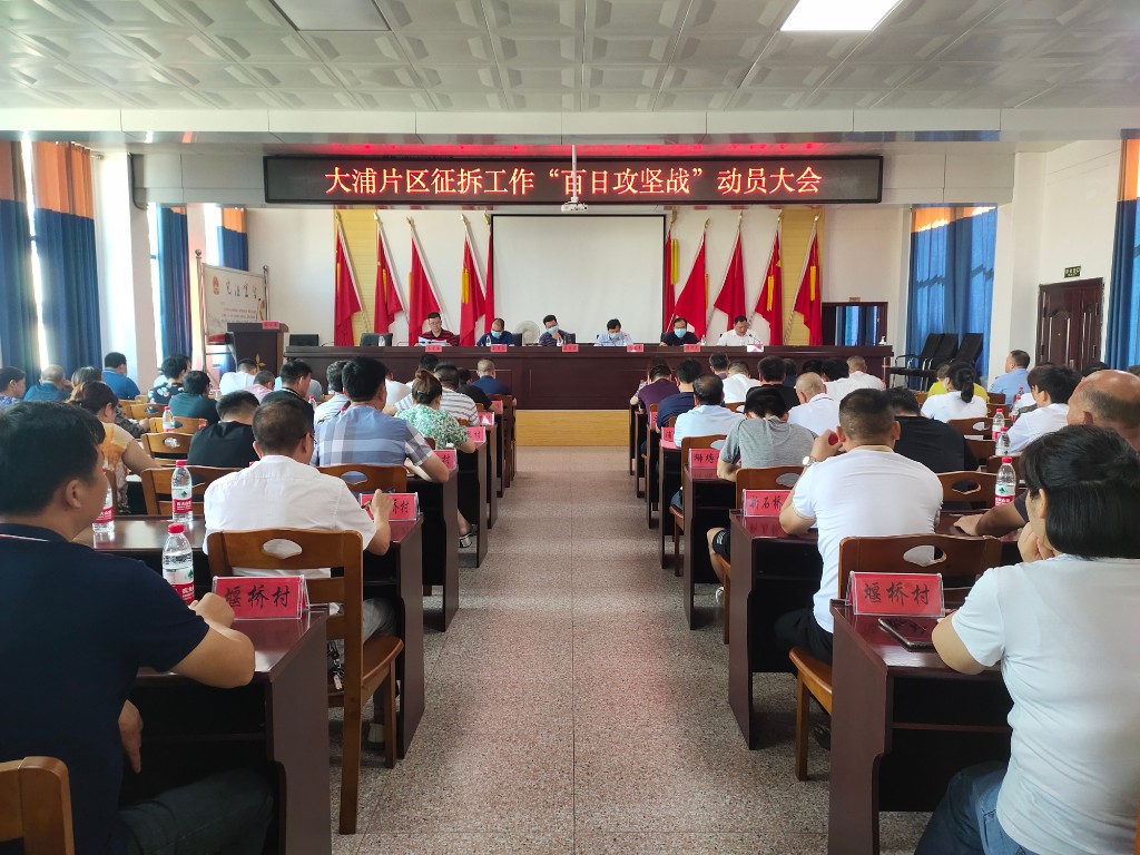 为进一步统一思想、明确目标、增强使命感、责任感和紧迫感,采取非常措施、非常力度、非常态势,上下齐心、攻坚克难、艰苦奋战,为项目建设储备足够的土地,为加快园区和大浦经济社会发展夯实基础。大浦镇于2022年7月8日上午9:00在镇便民服务中心二楼大会议室召开大浦片区征拆工作“百日攻坚战”动员大会。