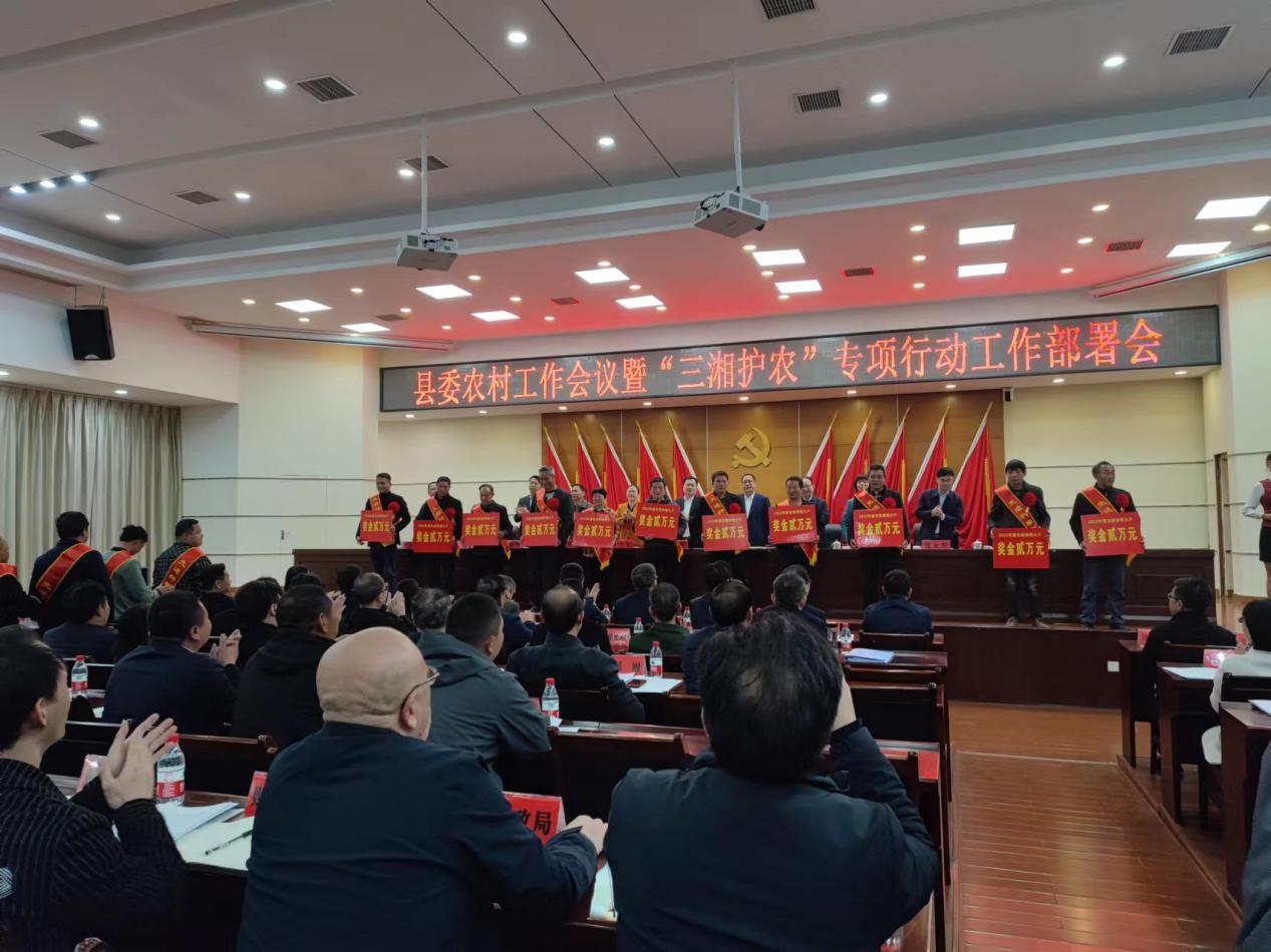 3月31日,衡东县委农村工作会议暨"三湘护农"专项行动工作部署会在武家山会务中心召开。县委书记谭建华同志作重要讲话。县委副书记、县长蒋崇华同志主持会议。县委组织部部长雷继红同志宣读2022年粮食生产工作先进乡镇和先进种粮主体的通报、2022年人居环境整治工作先进乡镇通报和2022年优秀乡村车间通报。县纪委书记、县监委主任肖明旭同志作"三湘护农"专项行动工作安排。副县长尹乙鸣同志作农业农村工作报告。