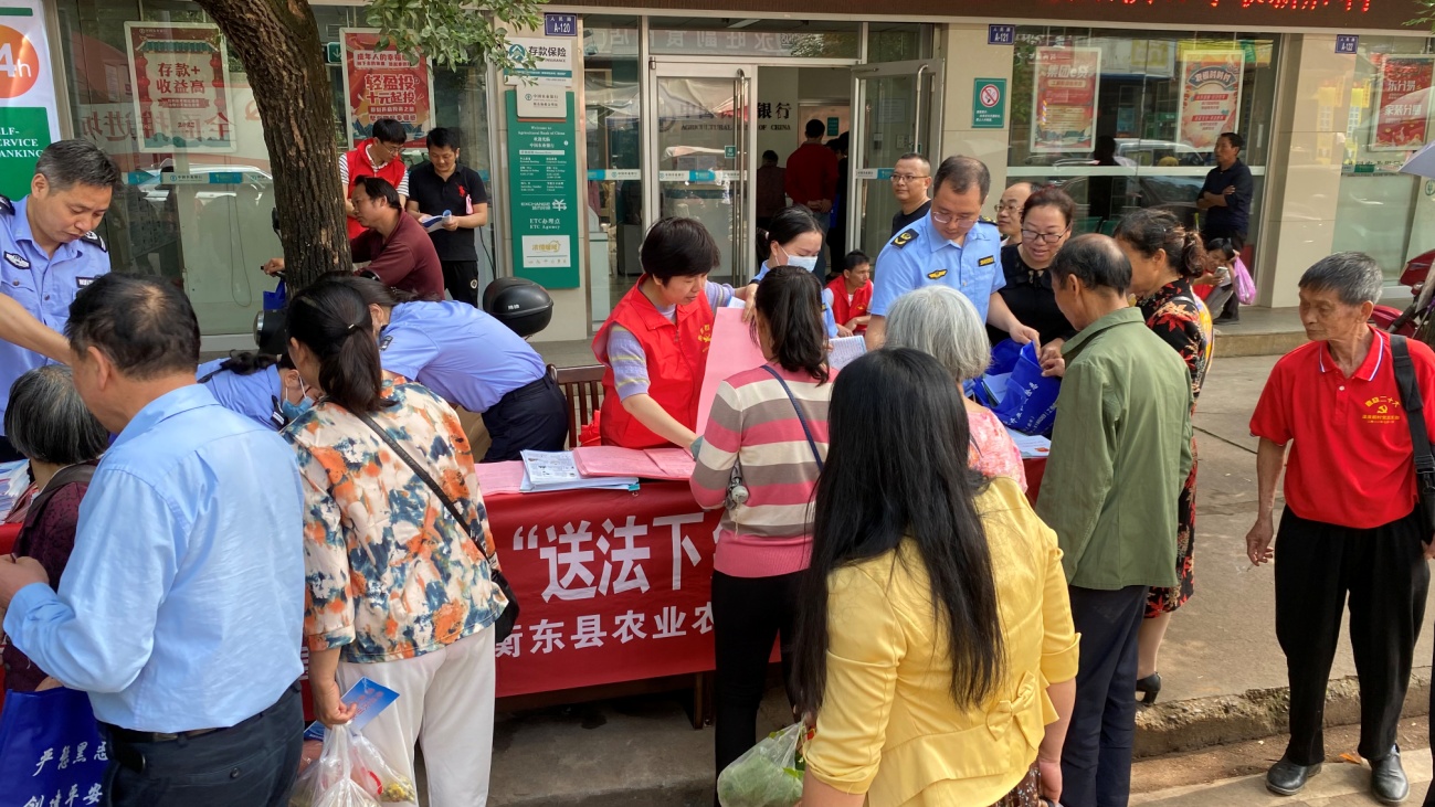 活动以"深入开展法治宣传教育,增强全民法治观念,提升全民法治素养,为乡村振兴提供坚实法治保障"为主题,主要通过悬挂宣传横幅、发放宣传资料、法律咨询等宣传方式,向群众宣讲和发放有关农产品质量安全、农村村民建房、禁捕退捕、动物防疫、农资打假等涉农法律法规政策及毒品预防、防范非法集资等与农民切身利益息息相关的知识,并在现场为农民群众答疑解惑。
