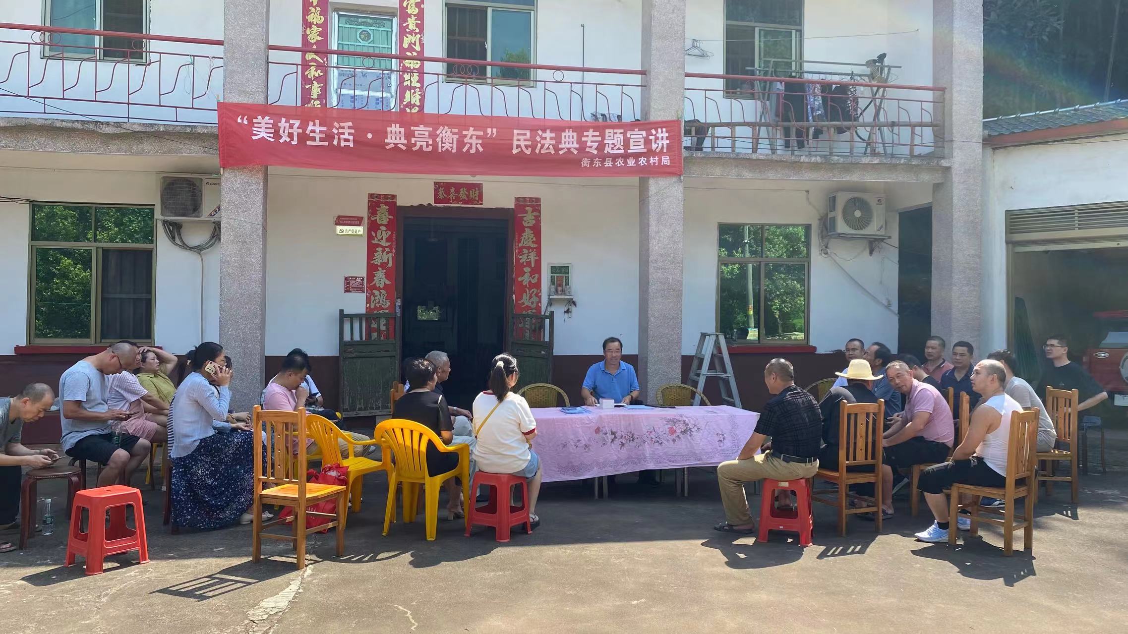 为打通《中华人民共和国民法典》普及的"最后一公里",让每位群众都能清晰透彻地了解《中华人民共和国民法典》,真正做到学法懂法用法,6月28日,衡东县农业农村局在霞流镇大泥塘村开展了以"美好生活 典亮衡东"为主题的普法宣传活动,让《中华人民共和国民法典》真正走到群众身边、走近群众心里。