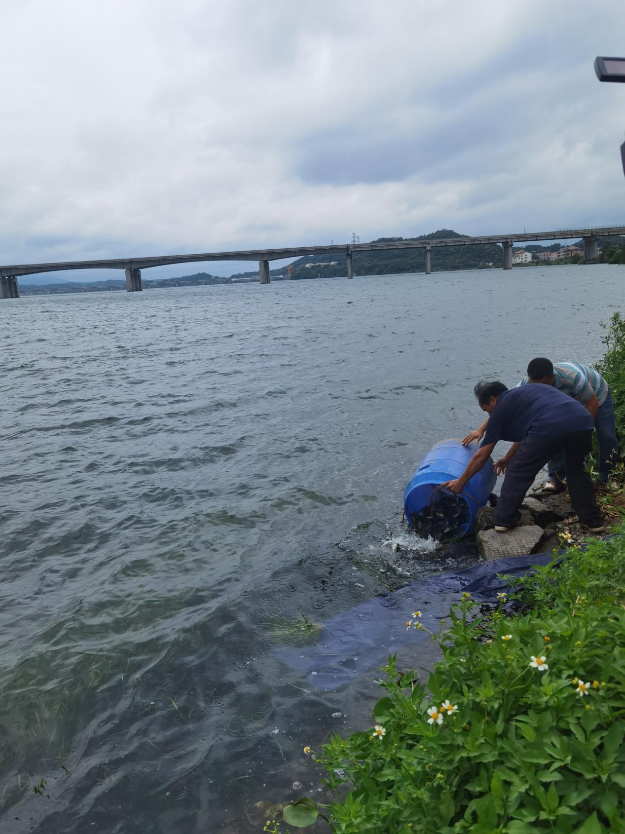 9月13日上午,吴某叔侄两人在湘江段(大源渡上游2000米)水域开展渔业人工增殖放流,共投放鳜鱼苗1000尾,翘嘴鱼苗500尾,鲤鱼苗1000尾、鳙鱼苗1000尾进行生态补偿,及时修复破坏的生态环境。