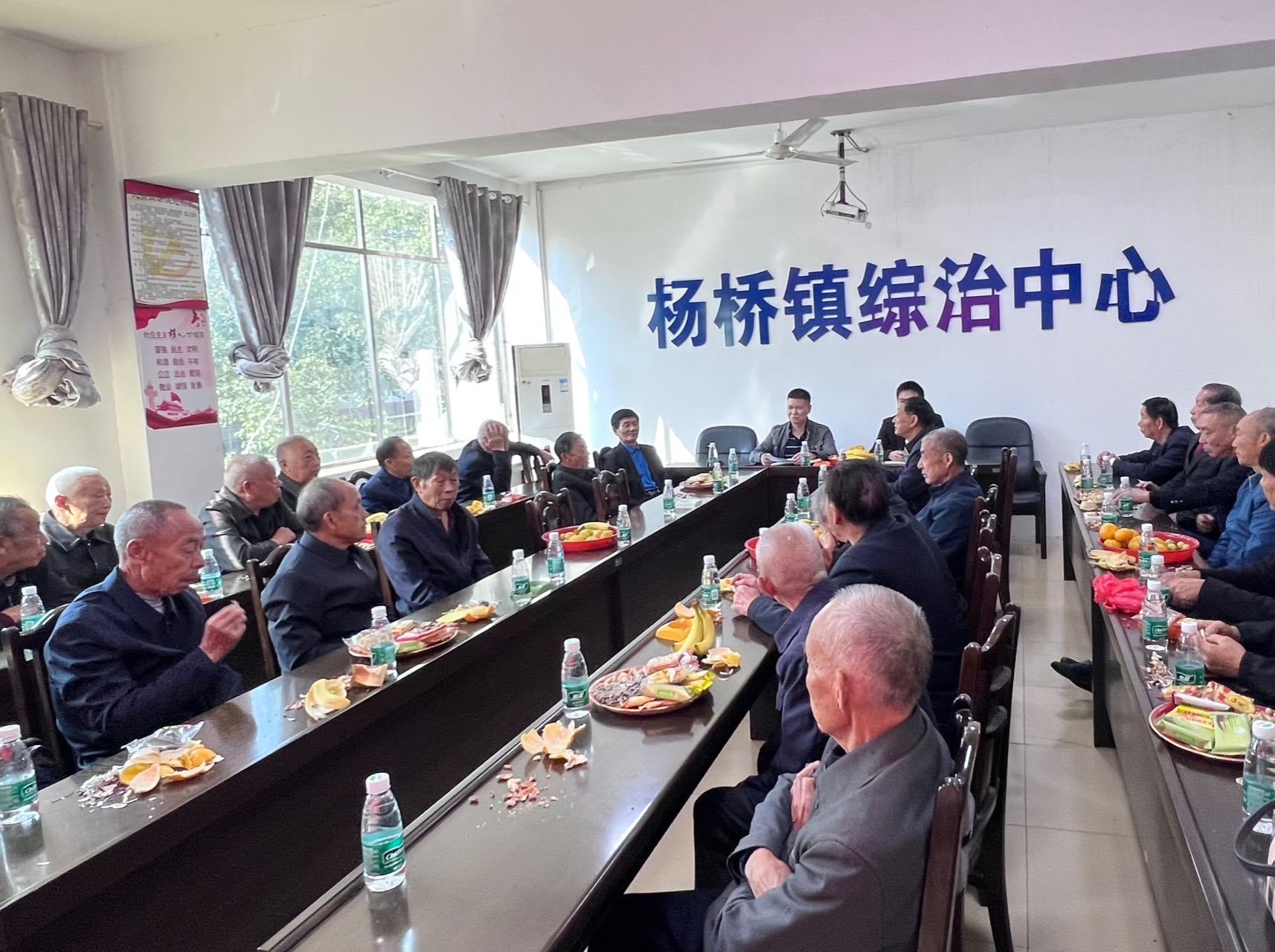 最后镇党委书记彭贵禄做出重要讲话,他表示感谢各位老前辈的良言贤策,既肯定了我镇当前各项工作,又为我们提出了中肯的意见和建议,我们也将再接再厉,进一步发挥各位老前辈务实的作风,共同努力,再创辉煌。同时,镇党委书记彭贵禄也表示大家在杨桥工作时间久,工作经验丰富,人生阅历丰富,是"资源富矿"和"智力宝库"。希望大家一如既往地关注、关心、支持杨桥的各项工作,积极地为镇党委政府建言献策、出谋出力,使我们各项工作更加切合实际、决策更加民主科学。也希望大家发挥桥梁作用,广泛宣传好上级的方针政策,协助党委、政府统筹协调好各方面的利益关系,及时客观地把群众的愿望和诉求反映上来,积极出主意、想办法,切实把广大群众的思想认识引导到镇党委政府的工作安排上来,把智慧和力量凝聚到推动杨桥镇高质量发展上来。