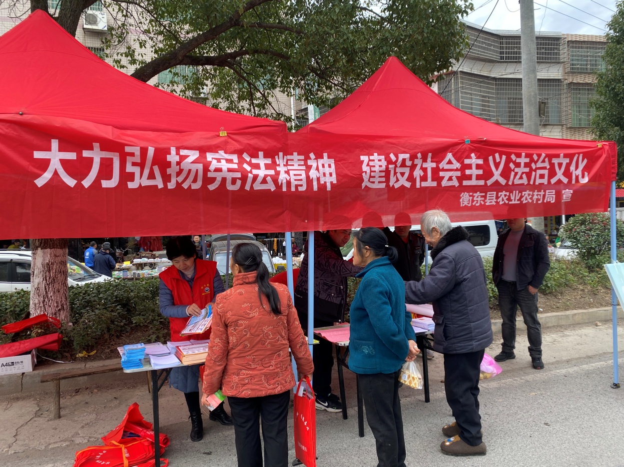 为深入学习宣传宪法,弘扬宪法精神,维护宪法权威,推动宪法全面实施,衡东县农业农村局落实县委宣传部、全面依法治县委员会办公室、县司法局的工作安排部署,12月8日在新塘镇潭泊村集市开展了"宪法进农村"主题宣传活动。