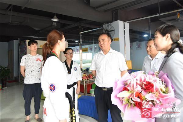 在衡东苍明高丽跆拳道馆,徐志毅详细了解了罗妙溢的训练、学习以及生活情况,赞赏她在第17届世界中学生运动会上的精彩表现。徐志毅指出,罗妙溢十二年如一日的扎实训练,最终获得世界荣誉,体现了勇于拼搏、不怕艰辛、敢于争先的精神,为衡东打造了一张新的体育名片。