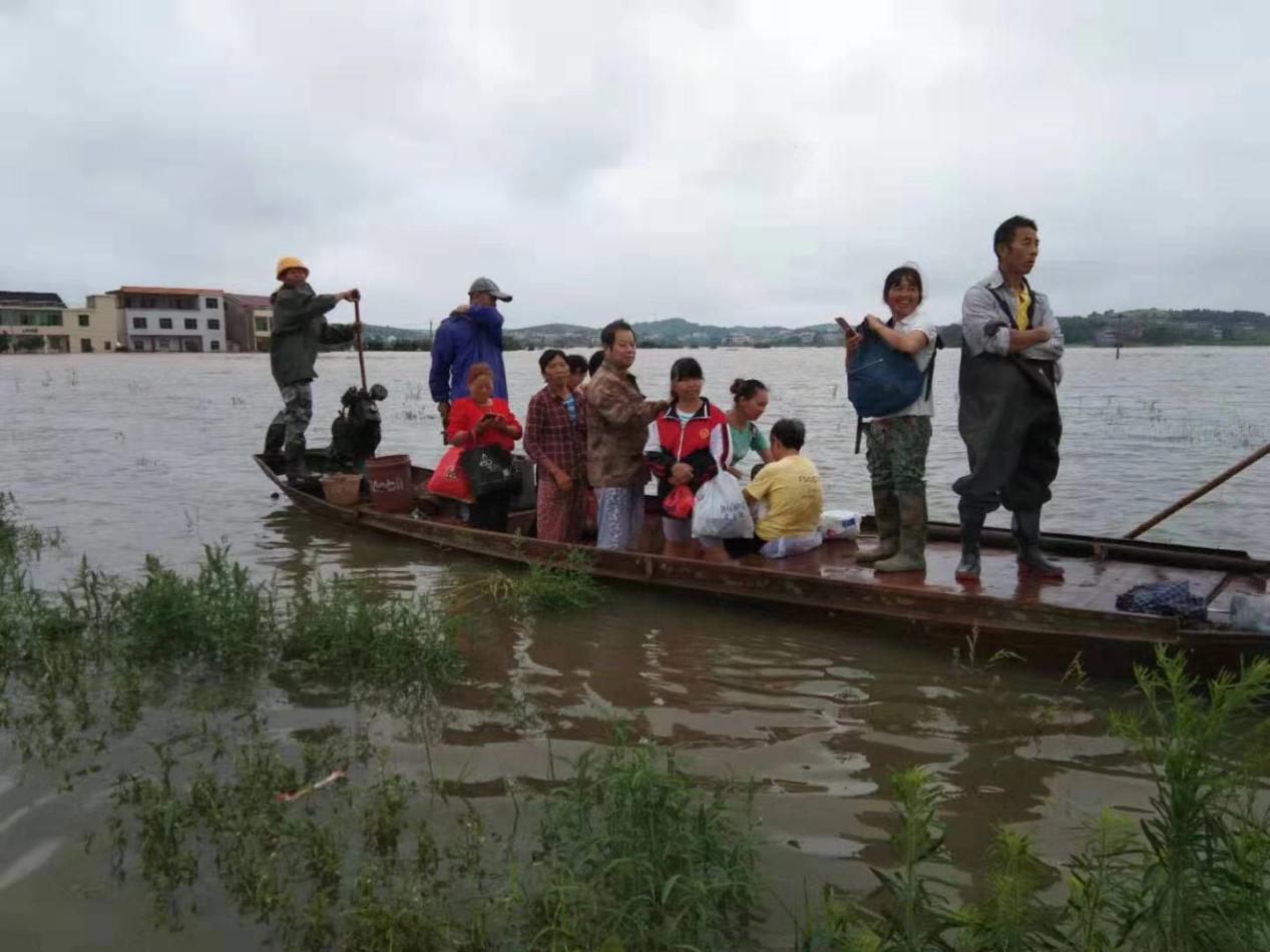 7月9日中午,尽管降雨逐渐减弱,但部分村仍水浸严重,积水最深处超过5米。其中欧塘村22、23组受灾最为严重,有56户216人被困在村组中,乡村干部紧急驰援,及时帮农户转移财产,组织船只和救援皮圈,将群众转移安置到安全地带,群众已全部转移。