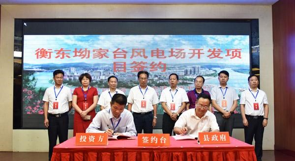 当天共集中签约12个项目,计划总投资达18.65亿元,分别是清雅田园综合体及万亩名优水果种植、衡东坳家台风电场开发、生态种养循环经济示范基地建设、东兴路桥工程有限公司总部办公楼建设、显尚家具衡东工厂建设、两万吨粮食仓储及大米加工生产线、领安水产品中转基地、荣桓镇液化气供应储配库建设、旺记农副产品配送中心建设、硅酸铝纤维生产、金都水果及农副产品仓储配送中心建设、衡阳雁城宾馆与衡东土菜合作项目。
