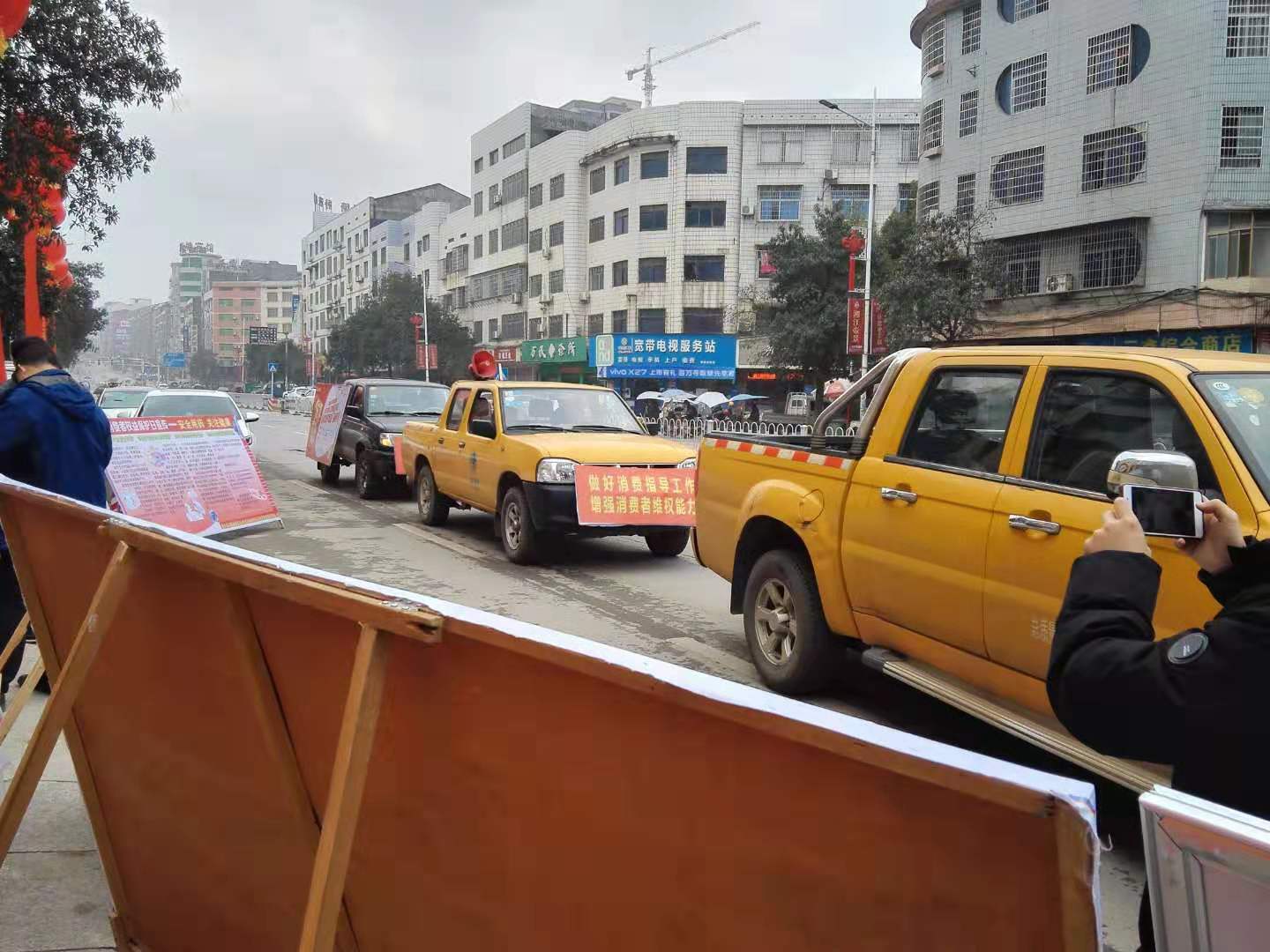 宣传活动分为三个方面。一是由衡东县市监局派出了6台宣传车,在新塘镇城区进行流动广播宣传。二是制作了6块展览板,集中摆放,进行基本常识宣传。三是发放宣传手册等资料。