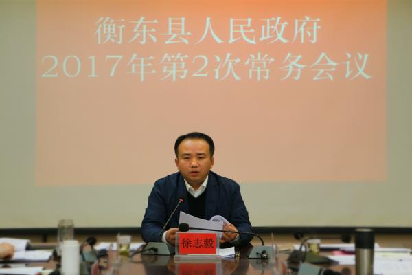 3月6日下午,县委副书记、县长徐志毅主持召开县政府第2次常务会议,研究安全生产、出台《关于加快发展养老服务业的实施意见》、出台《衡东县医疗卫生服务体系规划(2016-2020年)》、禁毒、与阿里巴巴合作发展电商产业等工作。