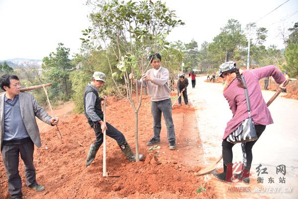 如今,村内3.9公里长的村道已经绿化完毕。作为通往衡南、石滩的必经之地,大家还无偿地把绿化带延伸到了村外,总绿化长度将达5公里。