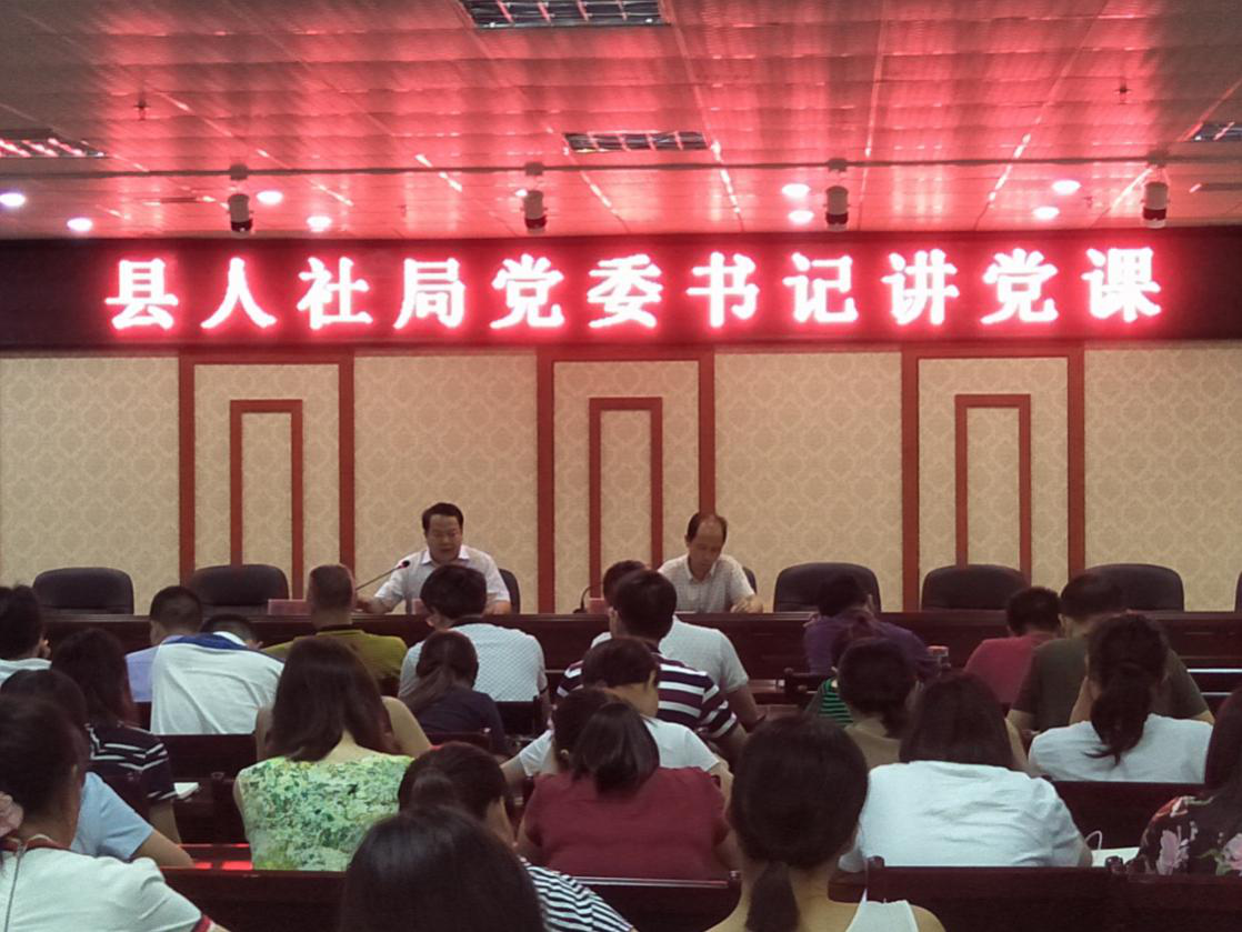7月10日下午,县人社局全体党员在党员活动中心参加局党委书记、局长李建雄以“增强组织性,严肃纪律性,进一步建立健全党建工作新常态新担当新作为—不忘初心 牢记使命”主题教育专题党课。