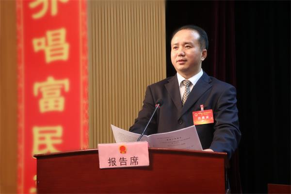 图:代县长徐志毅代表县人民政府向大会作政府工作报告