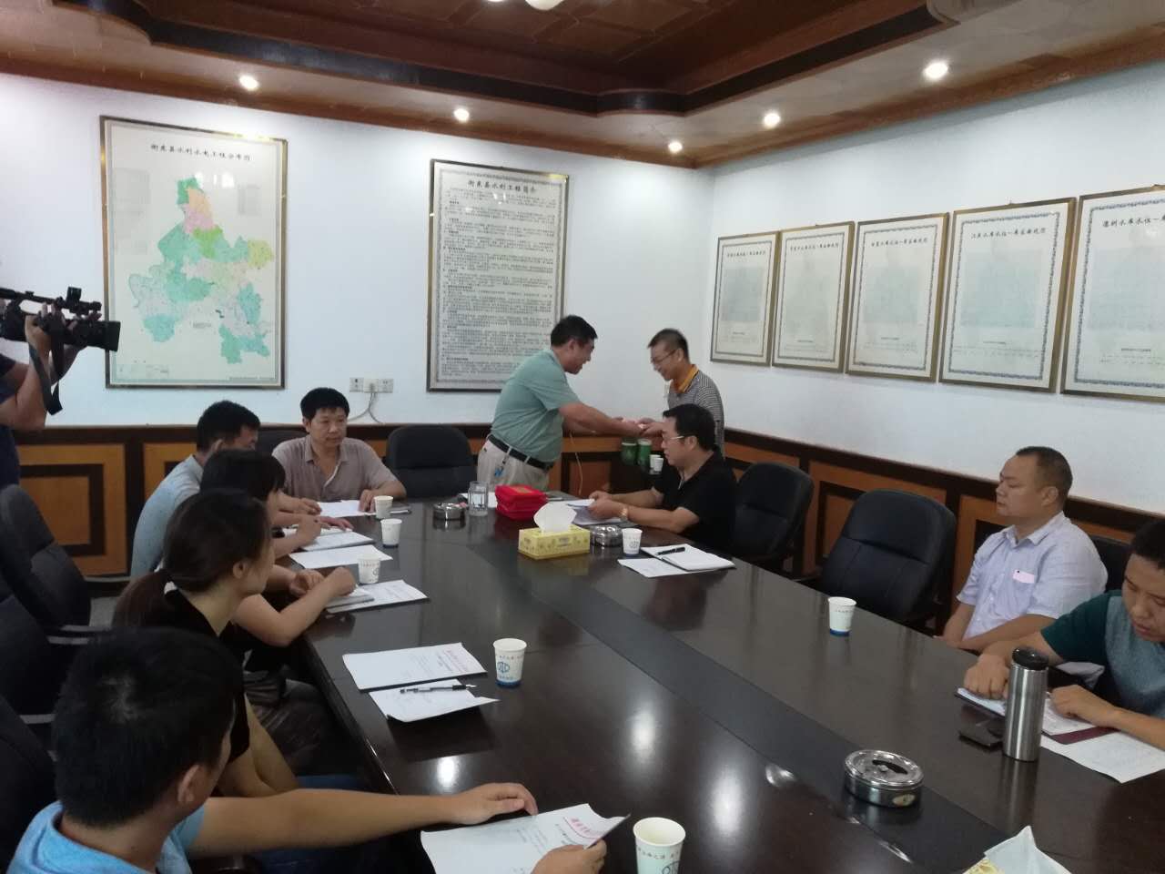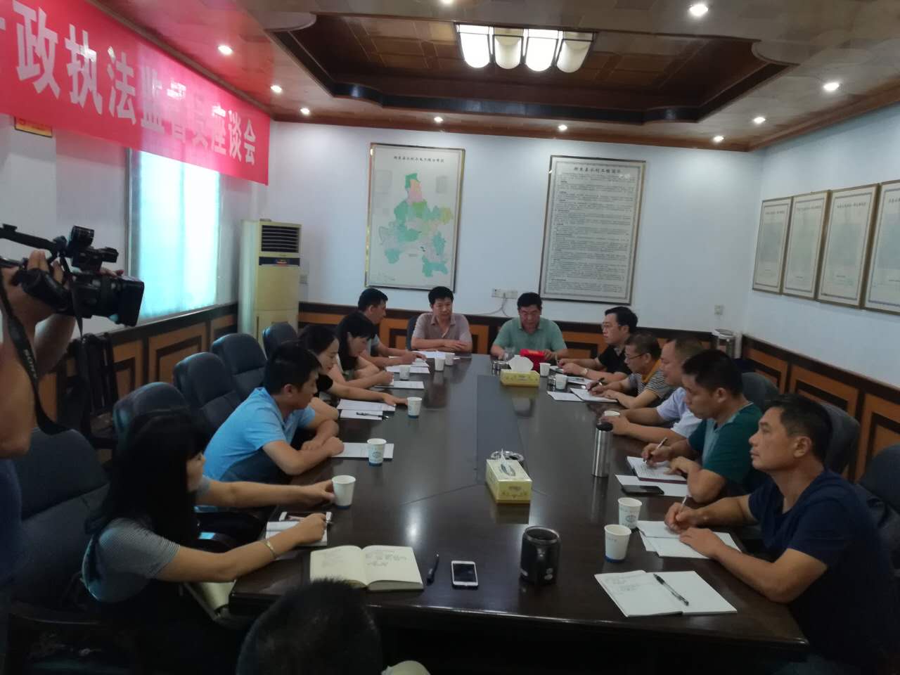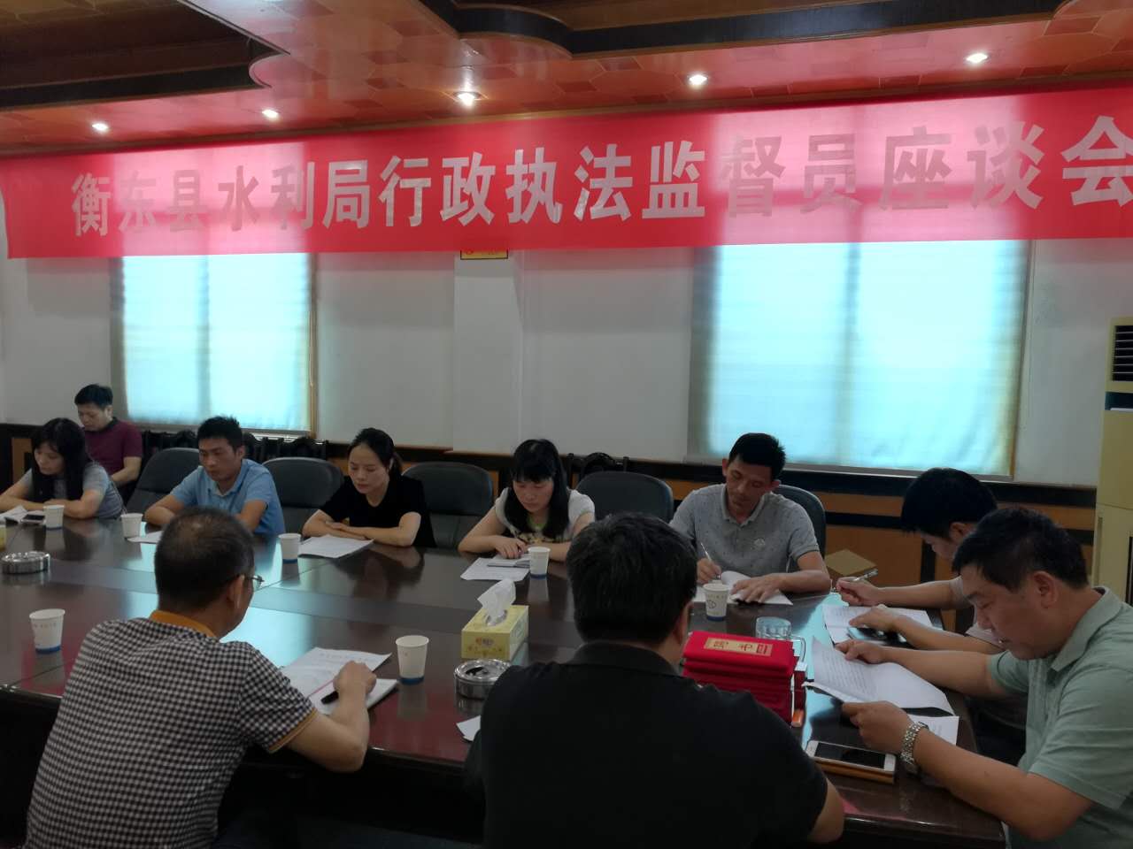 为落实法治政府建设和贯彻衡东县法制政府建设方案,9月14日,下午衡东县水利局召开社会监督员座谈会,会上聘请人大代表、政协委员、各级领导10名为水利行政执法监督员。会上宣读成立行政执法监督管理领导小组的通知并颁发聘书。通过听取水利局的执法工作情况介绍,监督员代表踊跃发表意见和意见,表示将做好监督工作,为办好我县水利事业作出自己的贡献。