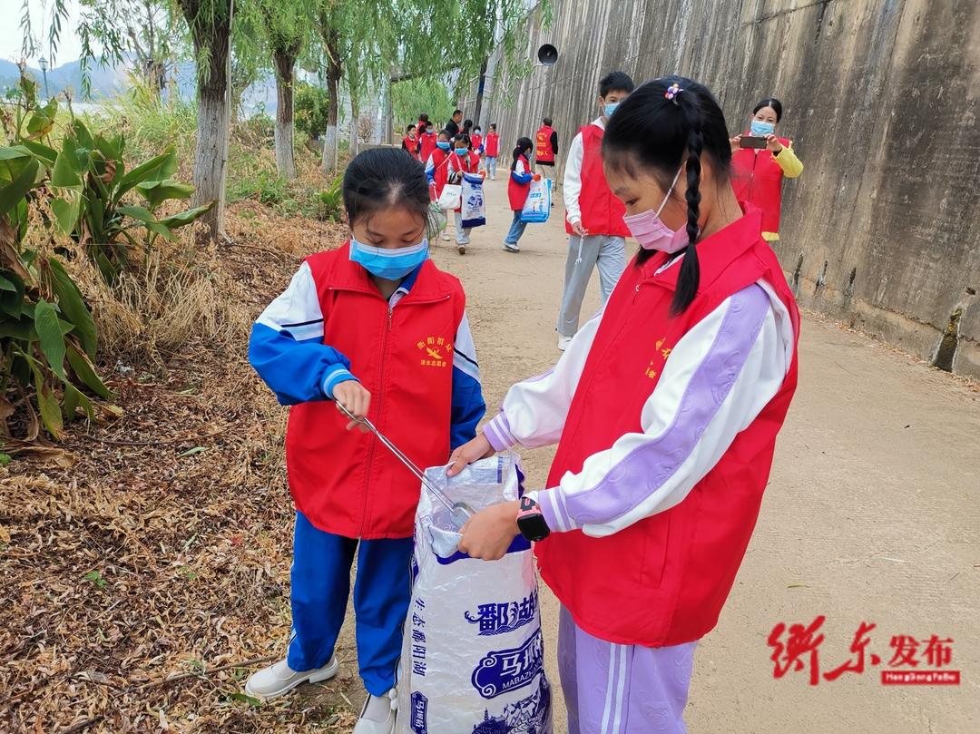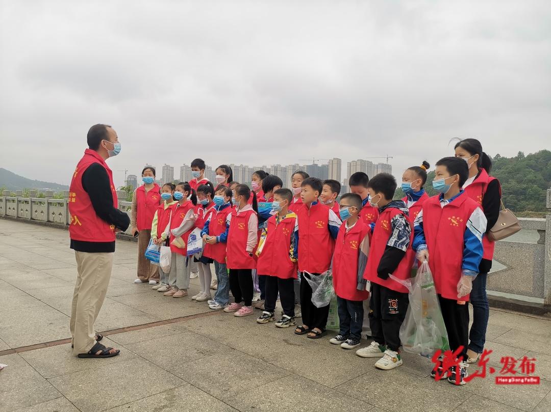 10月5日,县洣水志愿者协会与迎宾完小的师生们在洣水河畔开展"巡河净滩、河长制工作宣传"志愿活动。