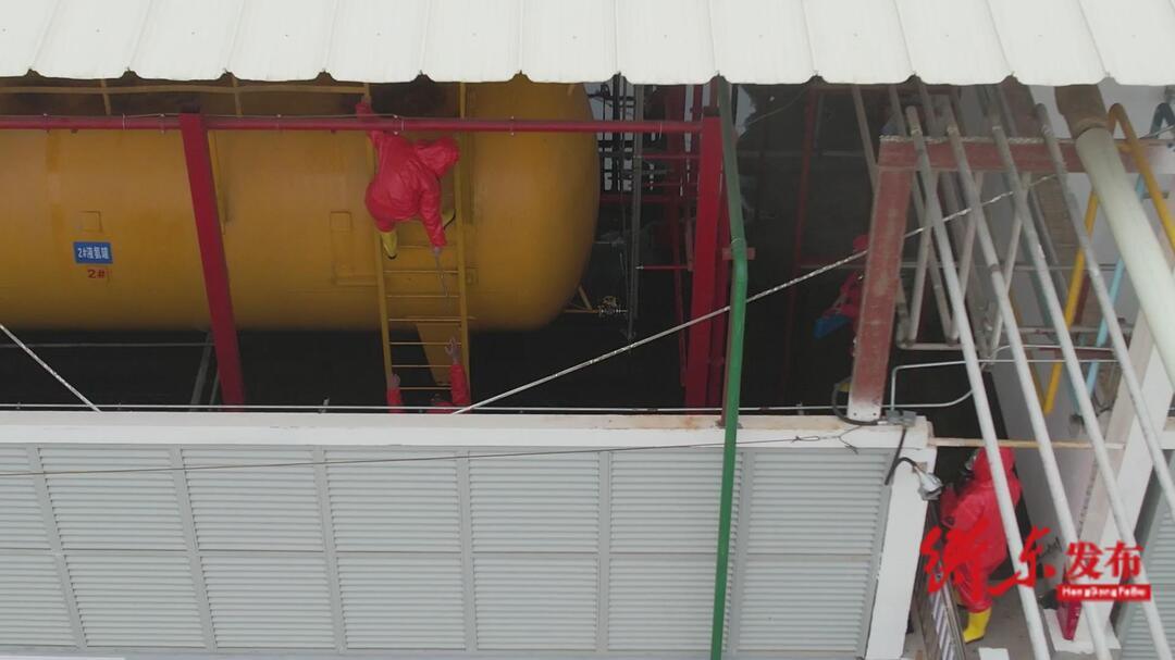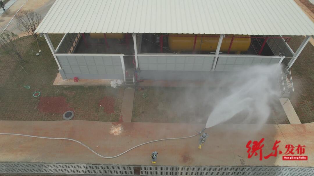 企业立刻启动应急预案,组织现场人员开展应急处置,采取消防喷淋、疏散人员并设置警戒线等措施。同时值班室立即将情况向衡东经开区应急值班室报告,衡东经开区管委会主任赵自文立即启动《衡东经济开发区突发环境事件应急预案》,同时向市生态环境局衡东分局、应急、公安、消防、卫健、交警等部门发布指令。