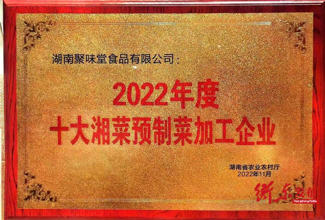 衡东融媒7月14日讯(融媒体记者 廖婷婷)为进一步推动湘品预制菜产业培育发展,助力乡村振兴。7月13日下午,由湖南省农业农村厅主办的湖南省湘菜预制菜加工企业专场推介活动在湖南省优质农产品产销对接综合服务中心举办,我县聚味堂食品有限公司获评“2022年十大湘菜预制菜加工企业”殊荣,并应邀出席,参加授牌。