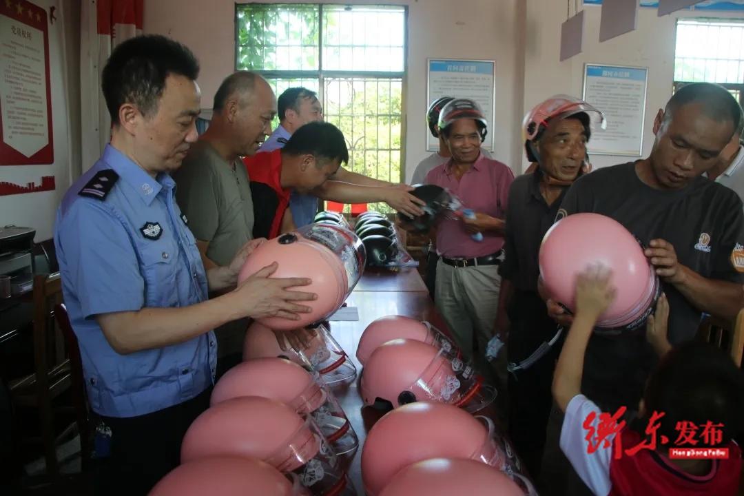 随后,民警为参加活动的村民免费赠送了安全头盔,以提高他们的交通安全意识和保护自己的安全。工作人员还向大家展示了头盔正确佩戴的方法,并呼吁大家一起抵制交通陋习,成为文明交通的践行者和传播者。