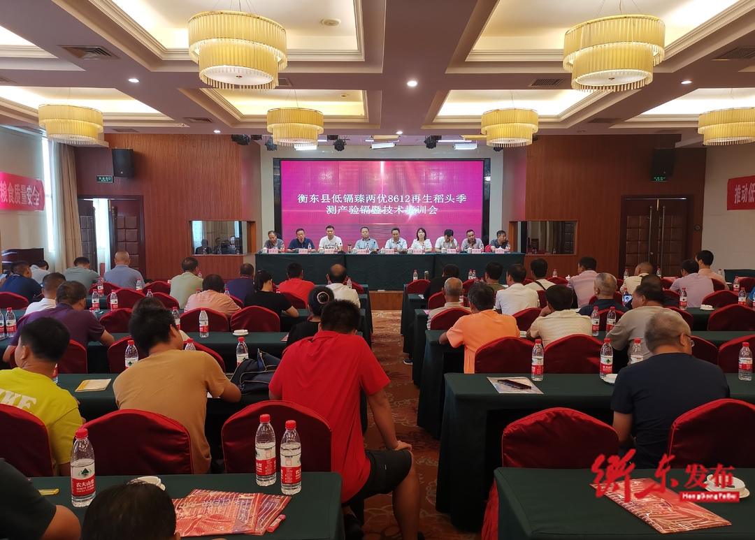 衡东融媒8月22日讯(融媒体记者 谭忠 李玲(实习))“水稻品种行不行,比比、测测看水平”。8月22日,县农业农村局开展优质水稻品种推广活动,邀请省、市农业技术专家、乡镇农业综合服务中心负责人以及种粮大户前往吴集镇红坪村再生稻示范基地观摩、测产、验镉。
