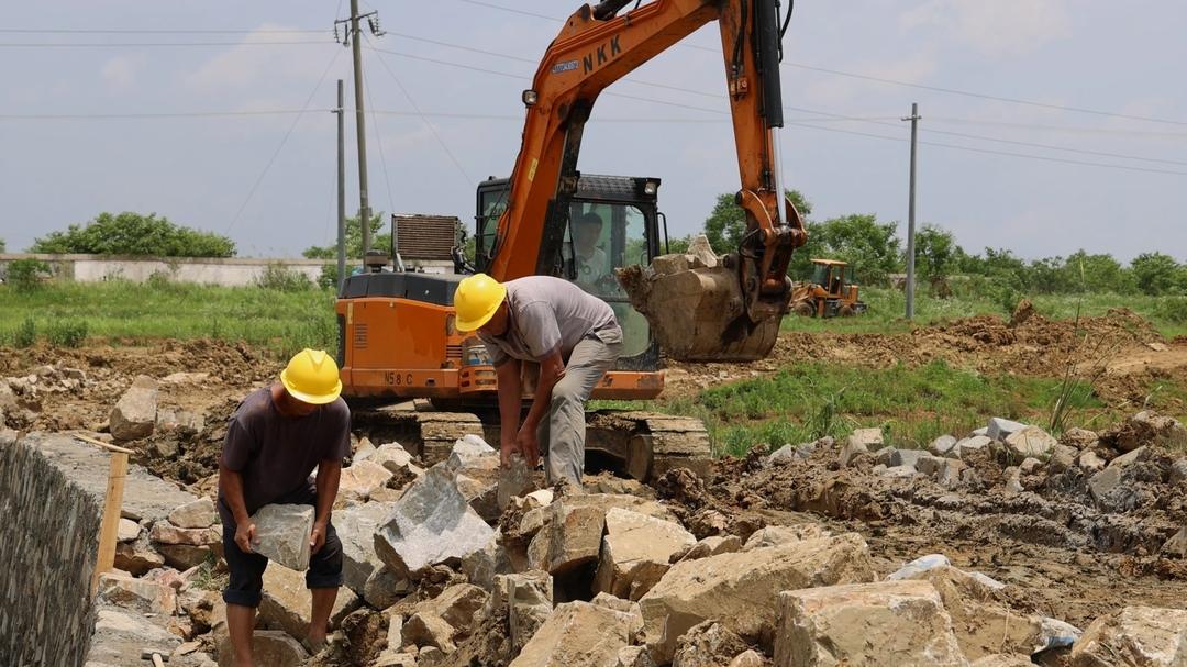 衡东融媒5月28日讯(融媒体记者 阳润红)5月25日,大浦镇岭茶村的高标准农田建设项目施工现场,记者看到机器轰鸣,挖掘机来回穿梭,工人们正在砌筑田埂、修筑水渠,田成方、路成行、渠成网、旱能灌、涝能排的现代化农田已具雏形。