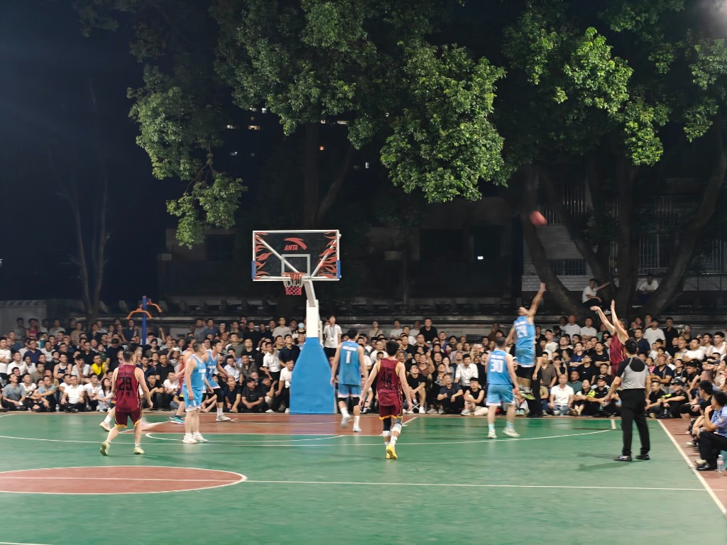 当晚的衡东县文体广场,篮球赛场被热情市民层层围拢,现场座无虚席、掌声与欢呼声此起彼伏。作为赛事 “收官之战”,乡镇组与企业组决赛相继鸣哨。赛场上,运动员们精神抖擞、斗志昂扬:篮球撞击地面的砰砰声中,精准传球尽显团队默契;奋力起跳的身影里,每一次投篮都凝聚着拼搏力量;果断抢断与严密防守间,尽显职工队伍的竞技风采。比分交替上升的紧张时刻,球员们咬紧牙关、全力拼搏;关键进球的瞬间,观众纷纷起身呐喊,啦啦队伴着擂响的战鼓声,以整齐有力的口号为运动员加油鼓劲,赛场内外的热烈氛围交织,将赛事一次次推向高潮,生动展现了衡东县职工敢打敢拼、团结协作的精神风貌。