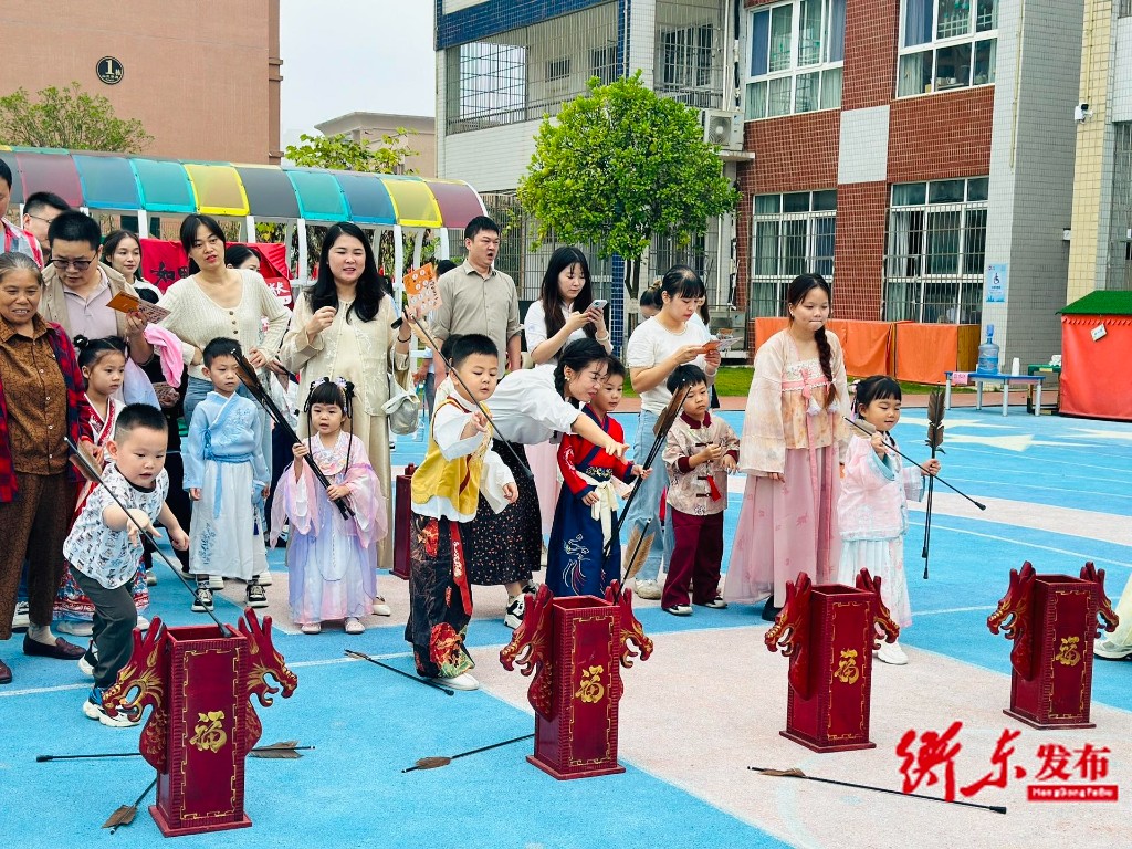 衡东融媒9月30日讯(融媒体记者 黄波)9月30日,衡东县育星幼儿园的红毯上满是温馨画面,孩子们身着汉服、唐装、马面裙等传统服饰,牵着家长的手有序入场,传统元素服饰交相辉映,氛围感十足。
