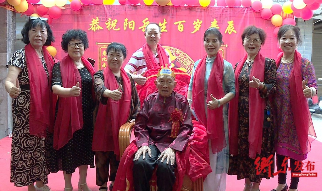 “今天是我爸阳岳生百岁寿辰……他长寿第一个就是习惯好,第二个是饮食方面调养好,第三个是处人待物都很好。”老四阳冬胜说。