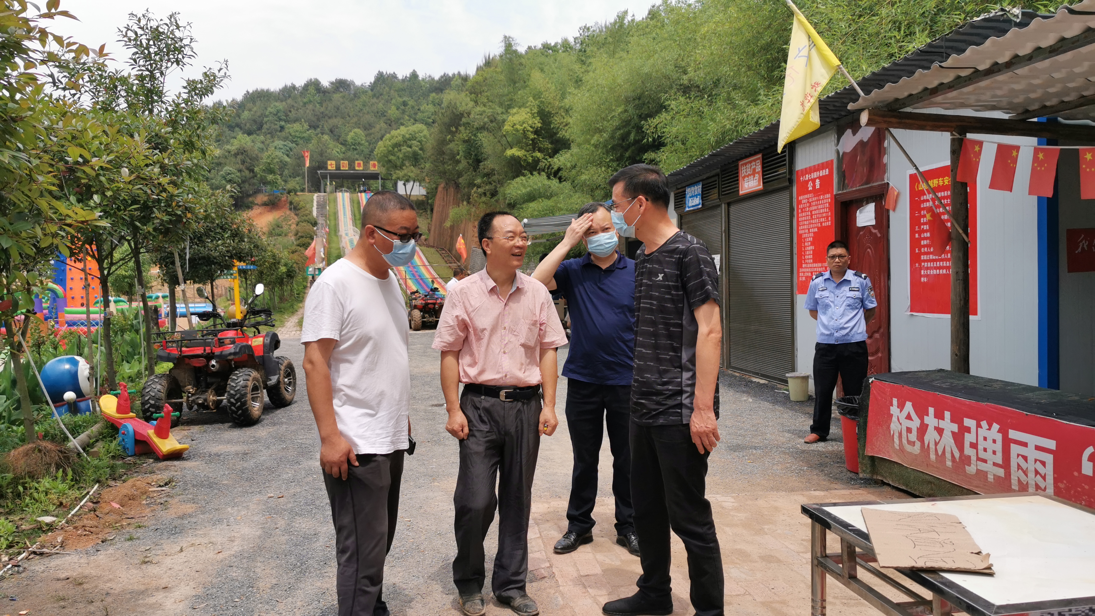 5月4日,县委常委、宣传部长刘运仕率县文旅广体局到我县重点旅游项目"十八潭乡村乐园"督导检查"五一"期间旅游市场疫情防控工作。